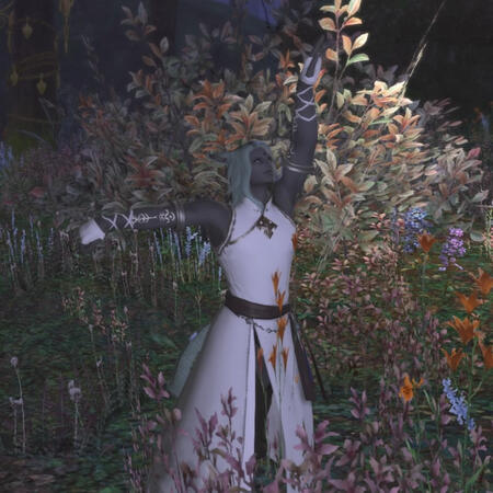 Fervent, Fiercely loyal, Driven, Primal, Passionate, Inquisitive, Affectionate, Easily Infatuated, Naive, BrazenSkills: Botany, Gardening, Basic cooking, Basic Carpentry, Hunting, Bow, Daggers, Spear/Lance, Minor Dancer Skills, Minor SailingBorn not far from the River Zeirchele Groa was a runt and not expected to live long, with this grim prediction she wasn't given a name until her 13th year once she came of age and had proven resilient. Born as a male Groa's mother, having no other children, didn't want to give him up so she hid his gender and raised him as female. Growing desperate she manages to get her hands on a ill-made fantasia that resulted in Groa retaining his male genitals but developing a more feminine body shape. Being short with brown skin and hair she reminded her mother of a hearty soil so she named her Groa, meaning to grow, hoping this would bring blessings on her short daughter. Always bullied and treated as lesser among her people she never did develop a strong sense of loyalty to her clan. Her mother always wished for a better life for her daughter knowing that the rest of the clan didn't accept her. In the chaos of the Garlean invasion she saw her opportunity to run, with the support of her mother she fled her old life to start fresh. Finding her way to Mount Yorn she began to build herself as she pleased. Taking a name from her favorite flower, Alyssum, and her new home, Yorn, a new woman was born into an exciting new world.Alyssum craves adventure, knowledge and companionship. Having never felt the need to stay in one place she found herself at the Kugane port seeking passage to anywhere. Lying about having sailing skills she was taken on as part of the crew, an older miqo'te named Oisin Aoife figured her out real quick and took her under his wing. Seeing much of his younger self in her they bonded quickly and she has become an adopted daughter to him. She now returns home to her new father with tales of her adventures.Hooks: