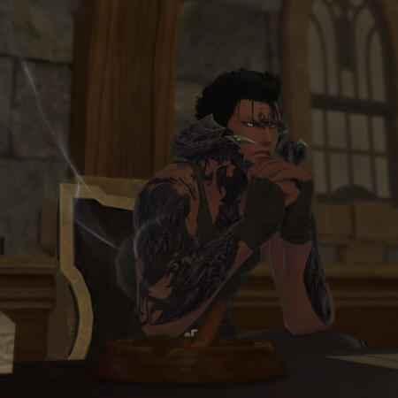 Ban is a black market boss working with the Ul'dah Syndicate. He is known for being especially brutal when someone crosses him. He enjoys power and status as well as flaunting his material wealth by spoiling those he cares for and donating to causes he approves of.